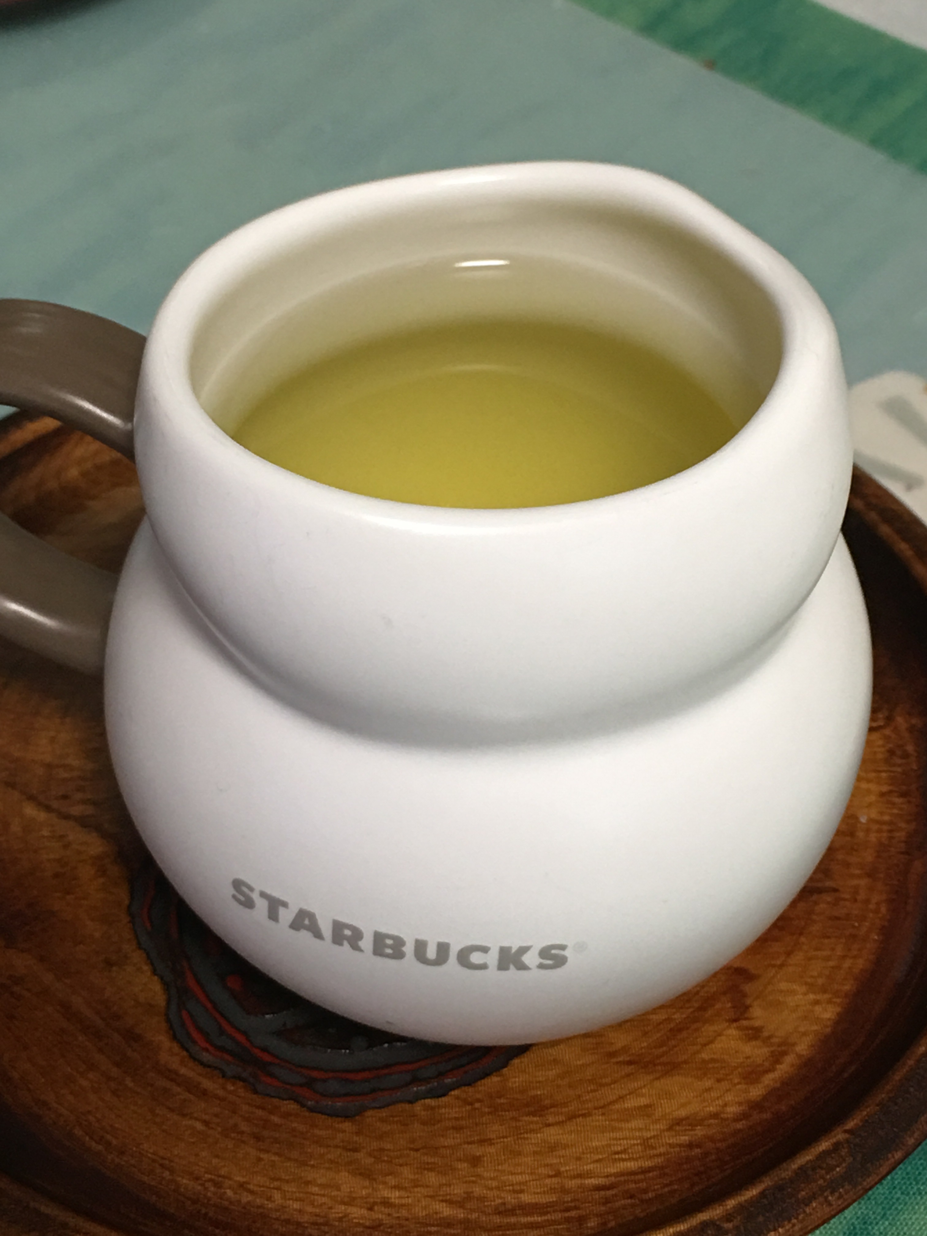 緑茶。煎茶だな。寝坊したのにまずは座ってお茶をいただく。