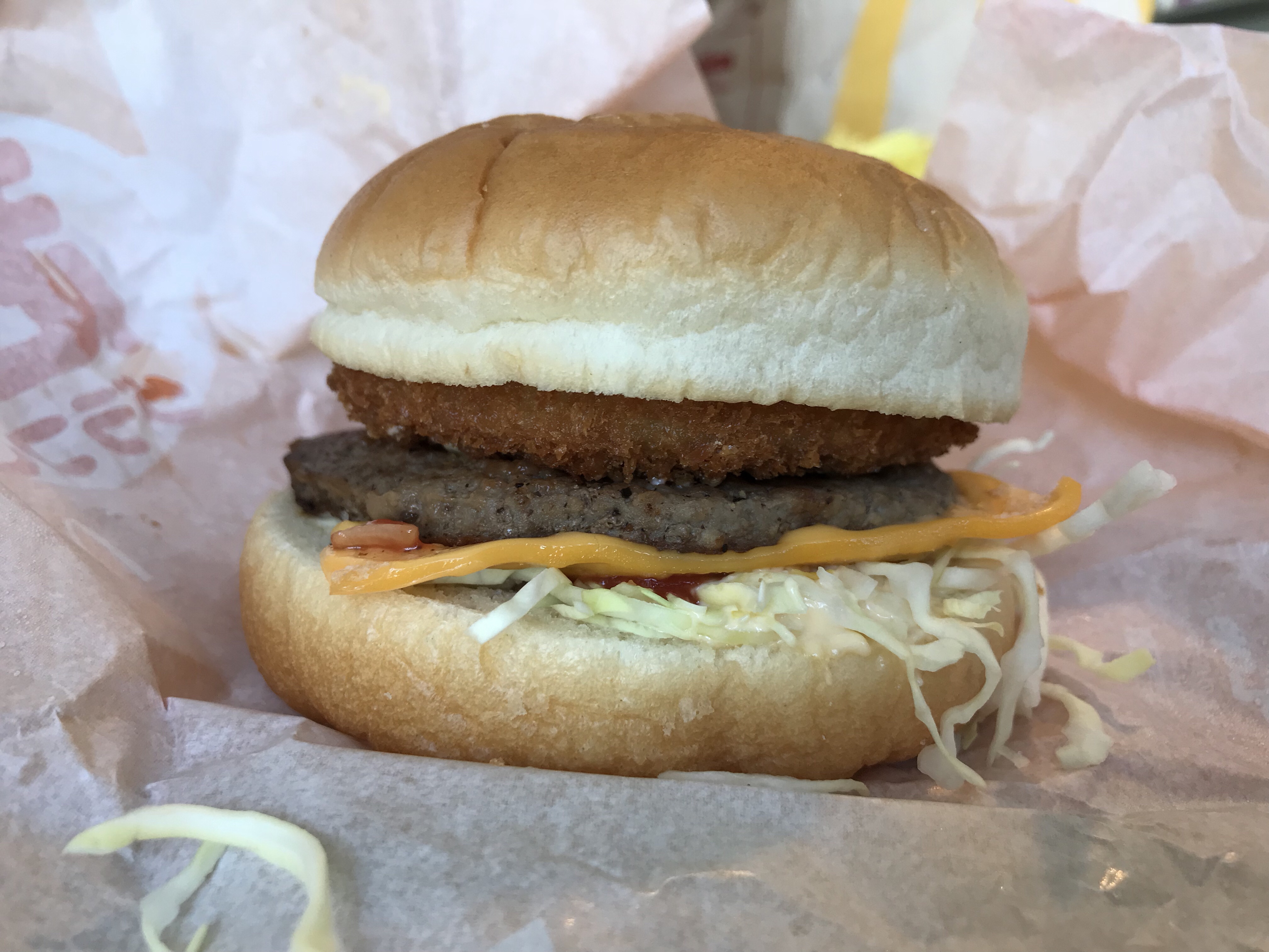 ハッピーセットとグラコロ 投稿者:vader 2017年12月13日2017年12月14日 コメントをどうぞ (ハッピーセットとグラコロ) 今日はランチがこれ。 さすがに同じものは飽きが来たので、今日はハンバーグとチーズとピクルスをグラタンコロッケバーガーに挟んだ。 神さんを入手できたが、既にあるので、友だちにあげた。