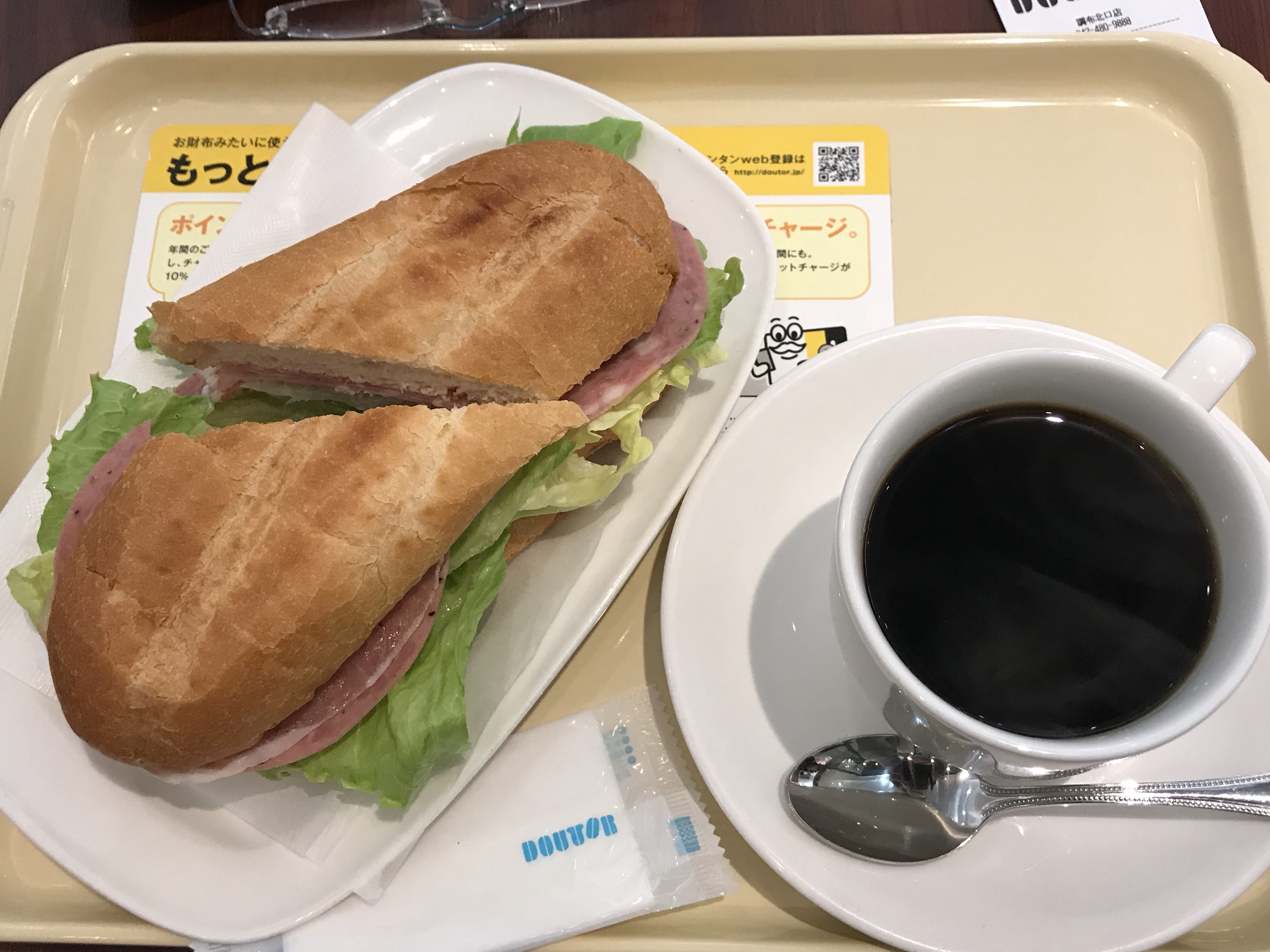 ミラノサンドAセット (ドトール) 投稿者:vader 2017年12月24日2017年12月28日 コメントをどうぞ (ミラノサンドAセット (ドトール)) ミラノサンドAという名前のハムレタスサンドと、ブレンドコーヒーという名前とコーヒー。 さっき朝食を取ったばかりだが、ここで取らないと夜までタイミングを逸しそうだった。