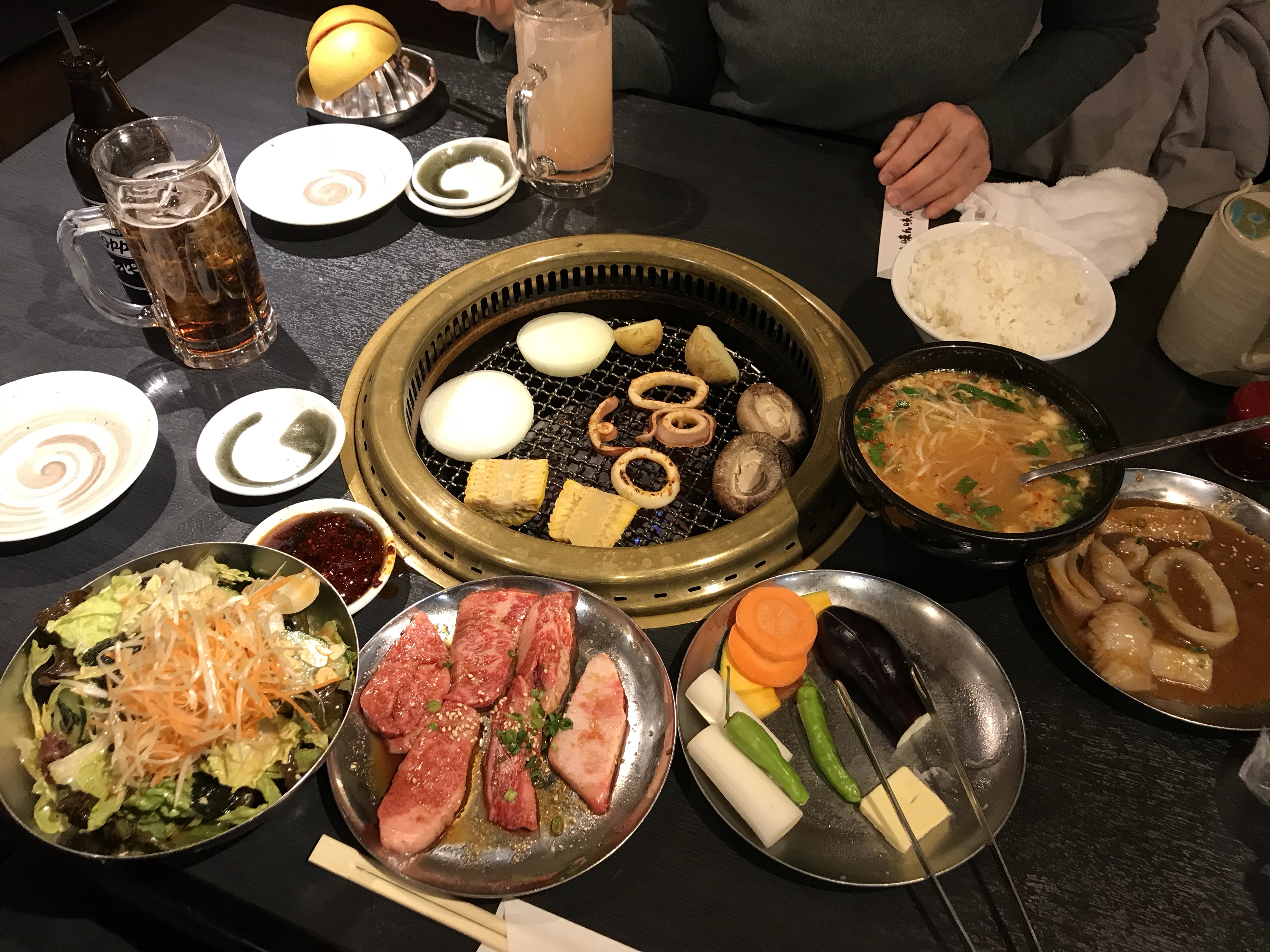 家の近所にある二軒の焼肉屋のうちの一つ。セットメニューがなく、とんがったメニューもないが、店内が広めで落ち着く。無煙の卓が多いのも嬉しい。テーブルか座敷かと言われたら、上に吸引口がない席ならどれでも良いです、と言っていい店。上から吸引する席は、火が偏っていて、扱いが難しい。