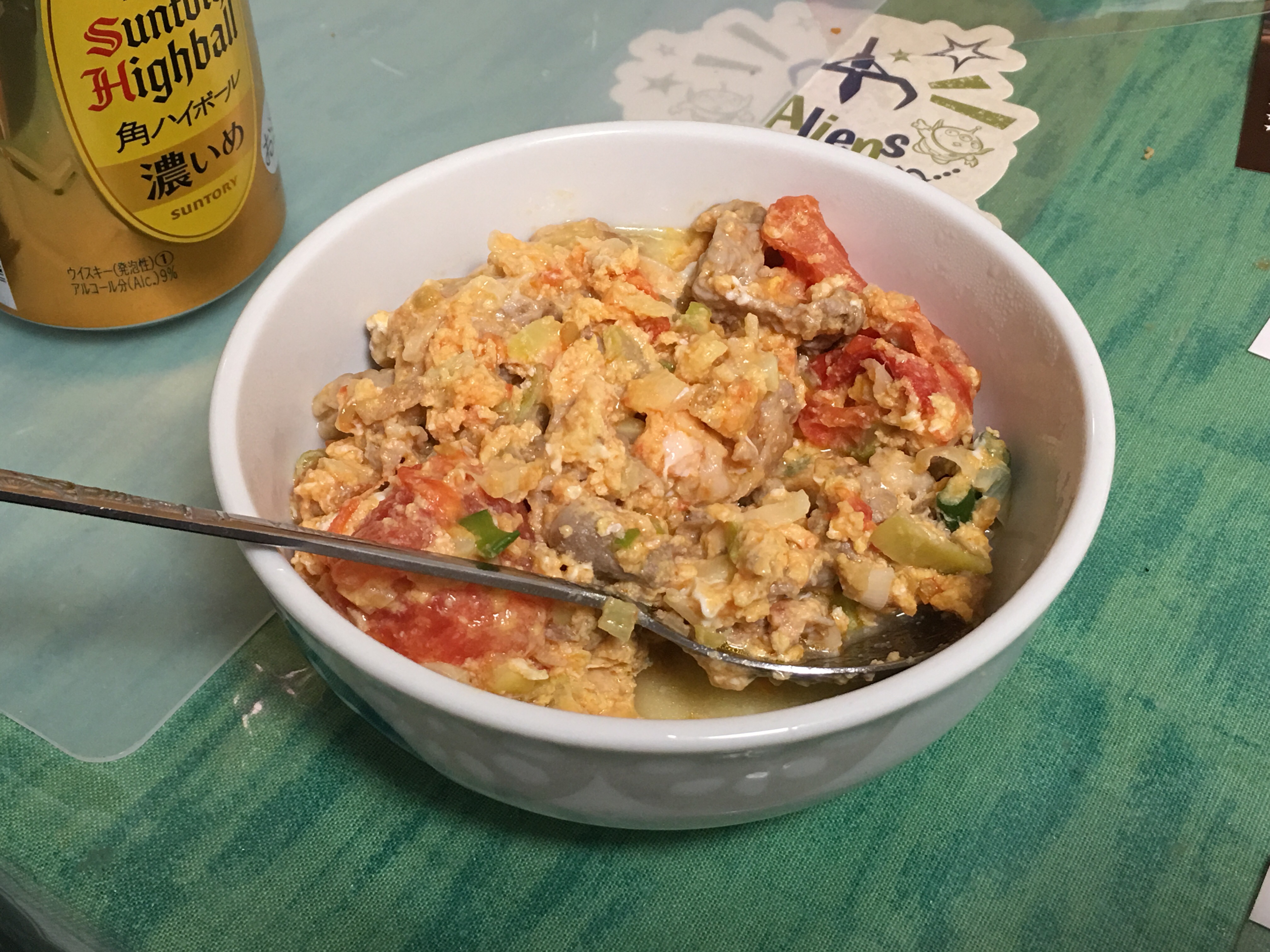 近くの食堂の週替わりメニューと、たまに残っているサイドメニューを組み合わせた。